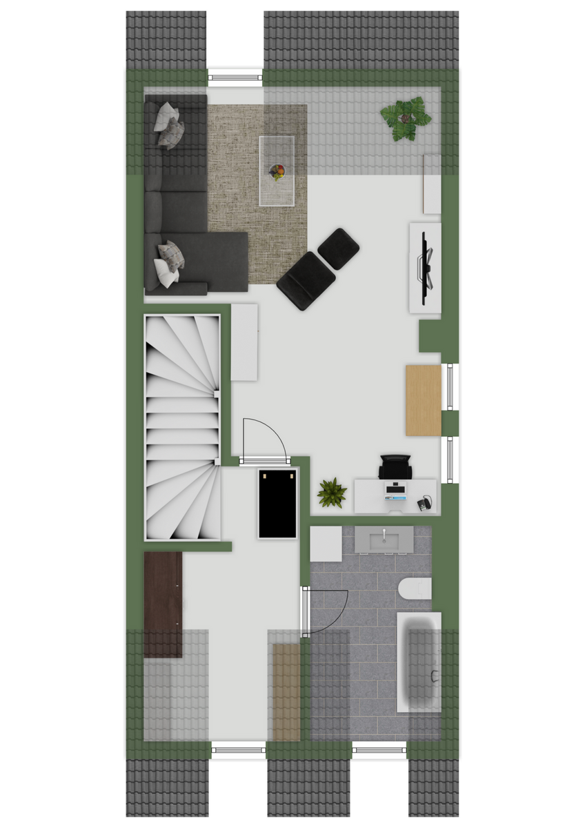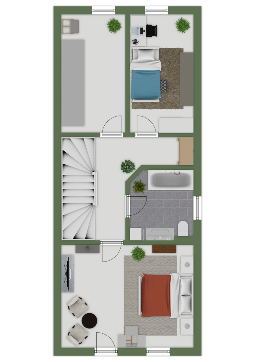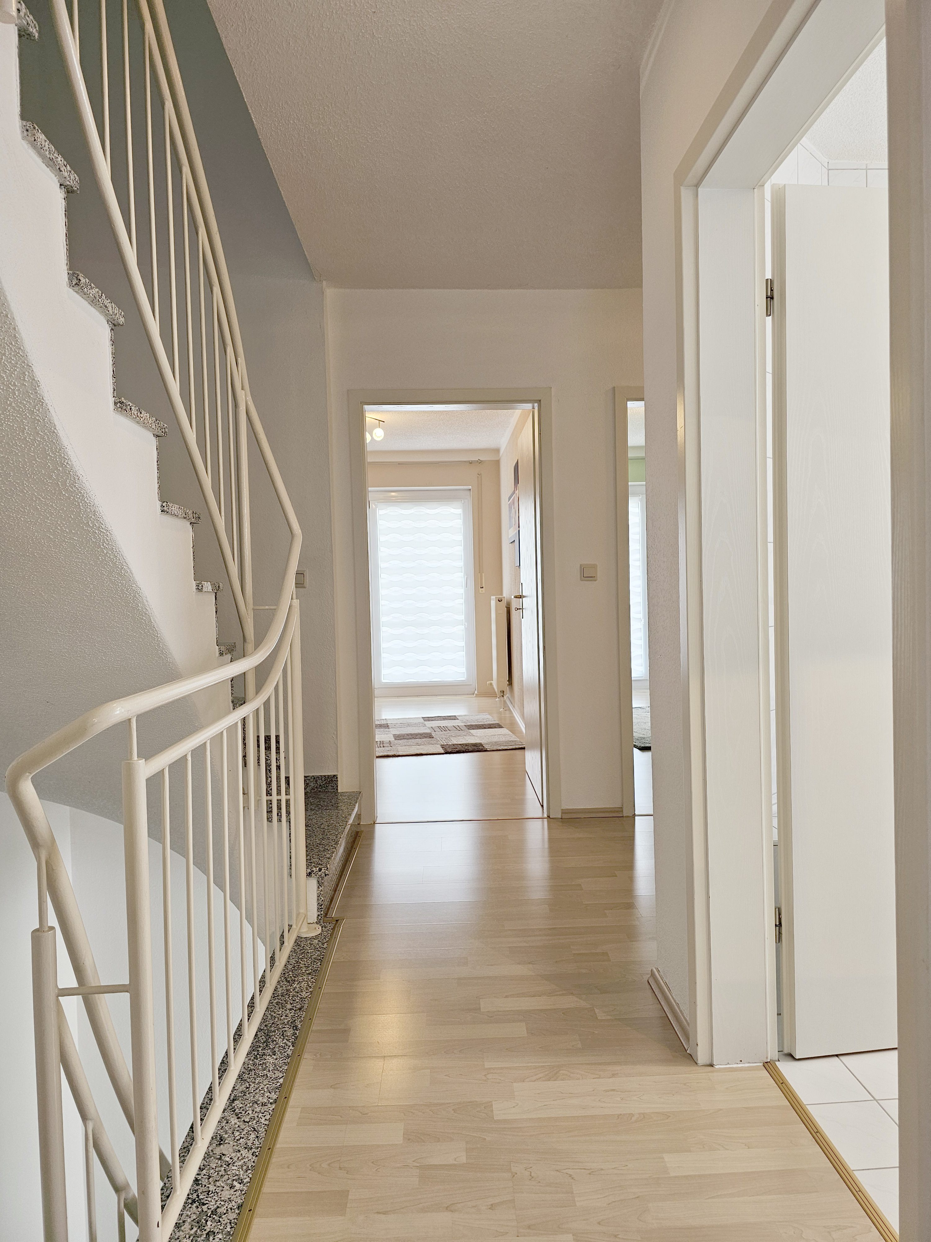 Mit 5 Zimmern, 2 Bädern und einem ausbaufähigen Dachgeschoss bietet das Haus flexible Möglichkeiten – ob für Homeoffice, Kinderzimmer, Gäste oder Hobbys. Besonders praktisch: Zwei voll ausgestattete Bäder – ideal, wenn morgens alle gleichzeitig losmüssen oder Teenager mehr Privatsphäre brauchen. Im 1. Obergeschoss befinden sich drei Zimmer (z. B. Elternschlafzimmer und zwei Kinderzimmer) sowie ein modernes Bad. Im 2. Obergeschoss gibt es ein weiteres Bad, ein großes Wohnzimmer und ein zusätzliches, offenes Zimmer – auch als Rückzugsort oder Leseecke nutzbar.