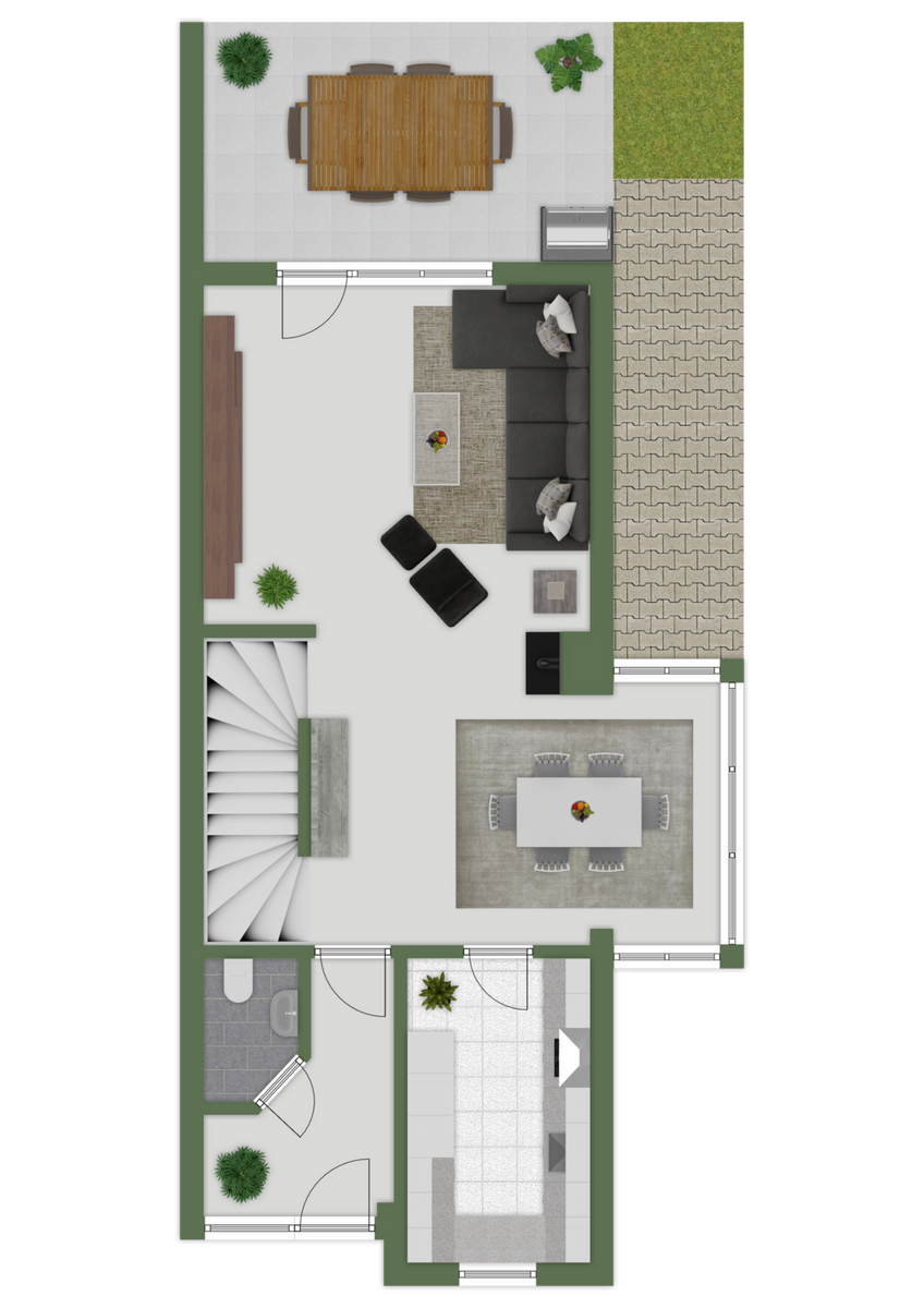 - 1 Außenstellplatz mit direktem Zugang zum Garten