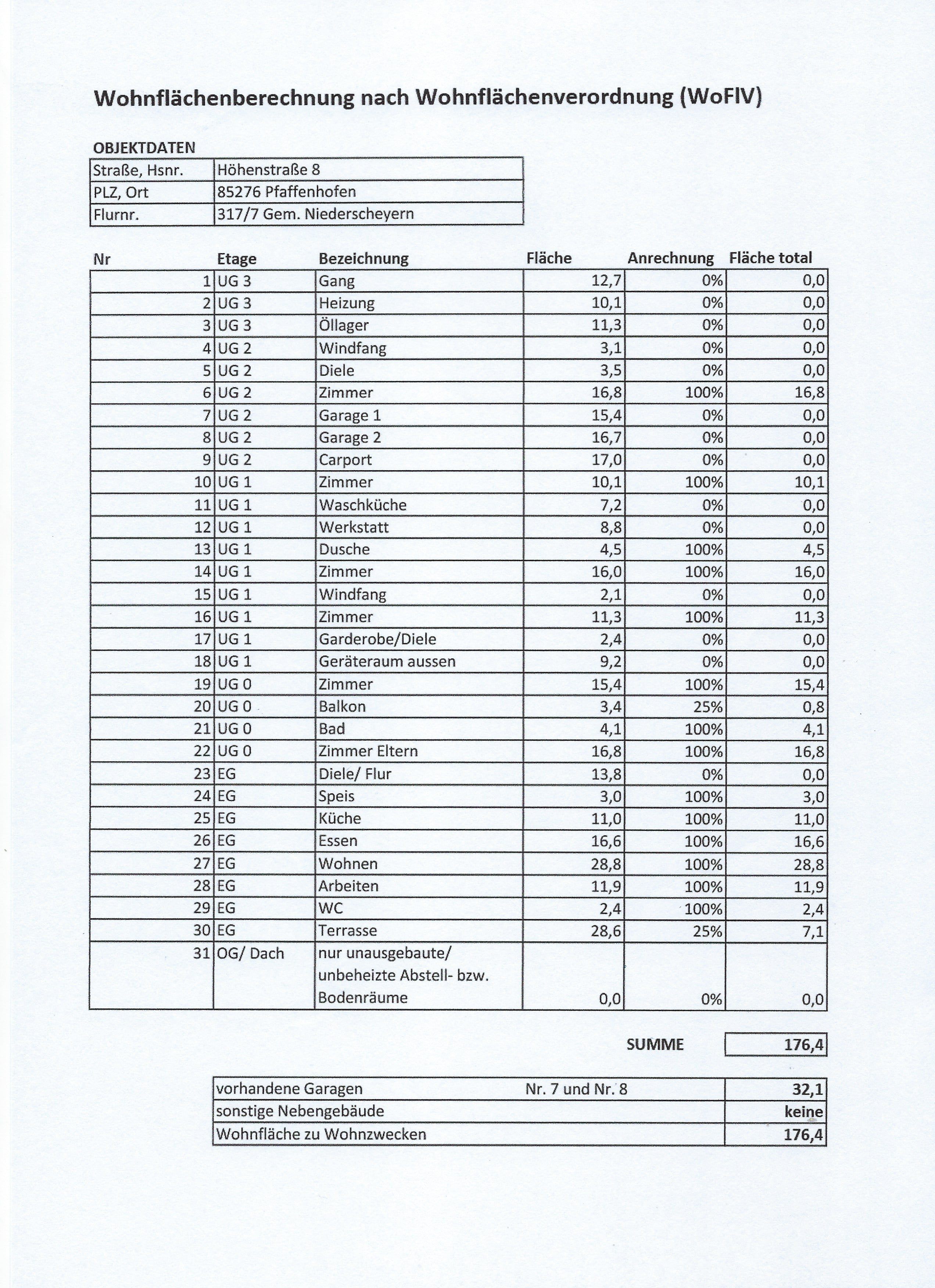 Das freistehende Einfamilienhaus verfügt über eine Wohnfläche von 176,4 m² sowie weitere 157,4 m² Nutzfläche (inkl. zweier Garagen) – insgesamt 333,8 m² Fläche, die Raum für Visionen lässt.