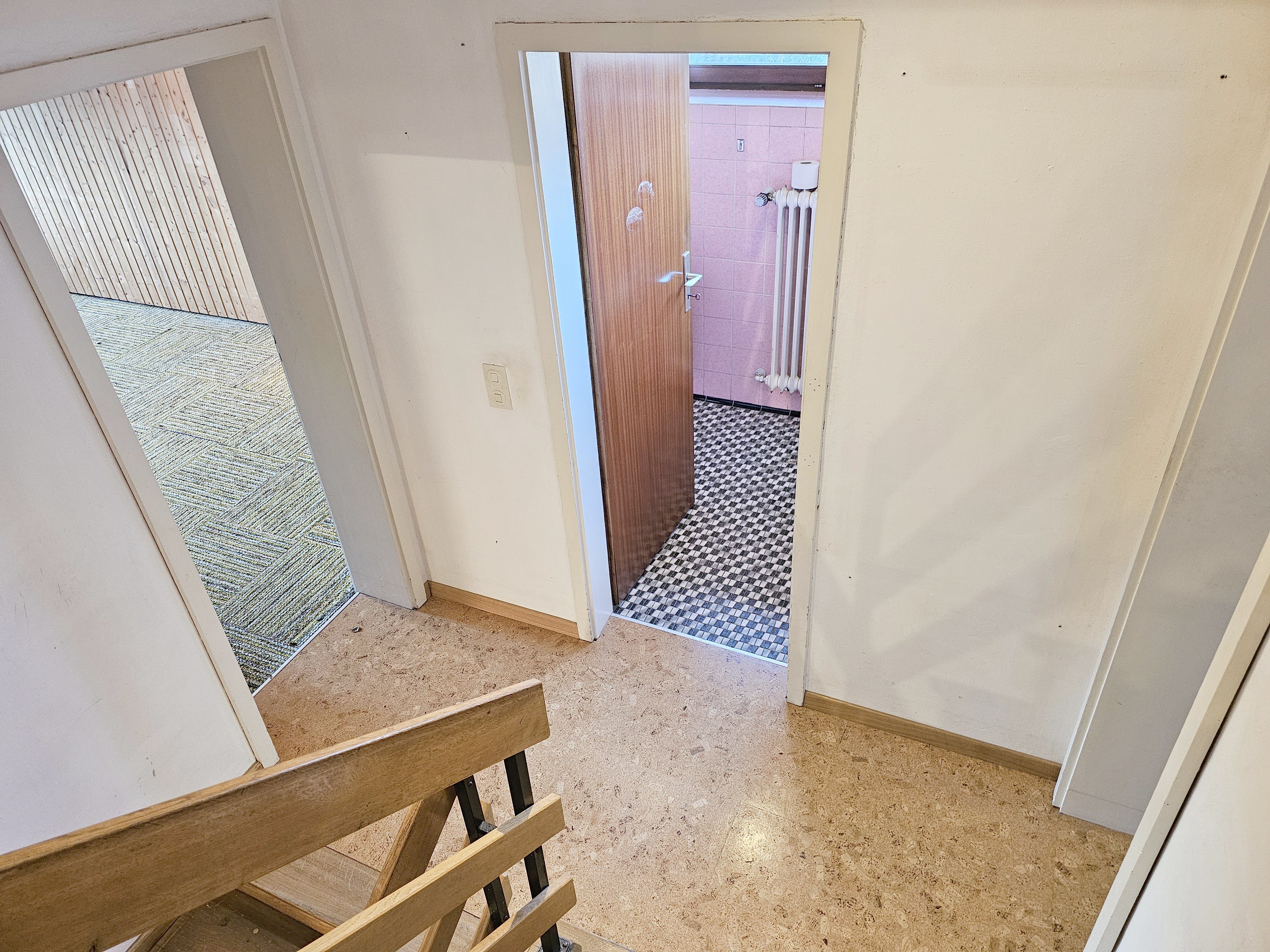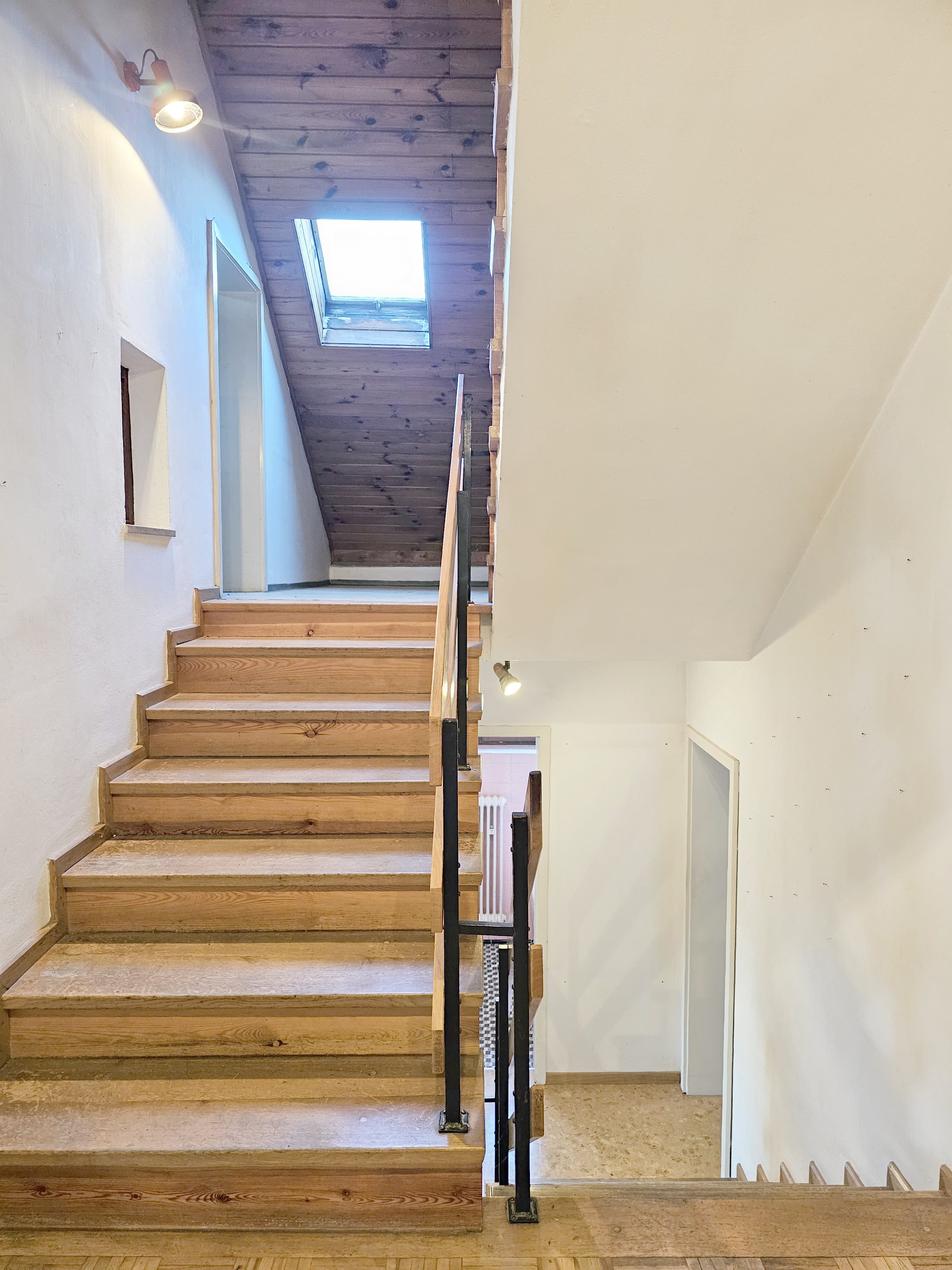 Die Architektur verteilt sich auf drei Hauptwohnebenen, durch die Hanglage finden sich in Summe 7 versetzte Ebenen (inkl. Keller, kleines nicht ausgebautes Ober- und darüber Dachgeschoss) – ideal, um Wohnbereiche zu trennen, Rückzugsorte zu schaffen oder perspektivisch mehrere Wohneinheiten zu realisieren.