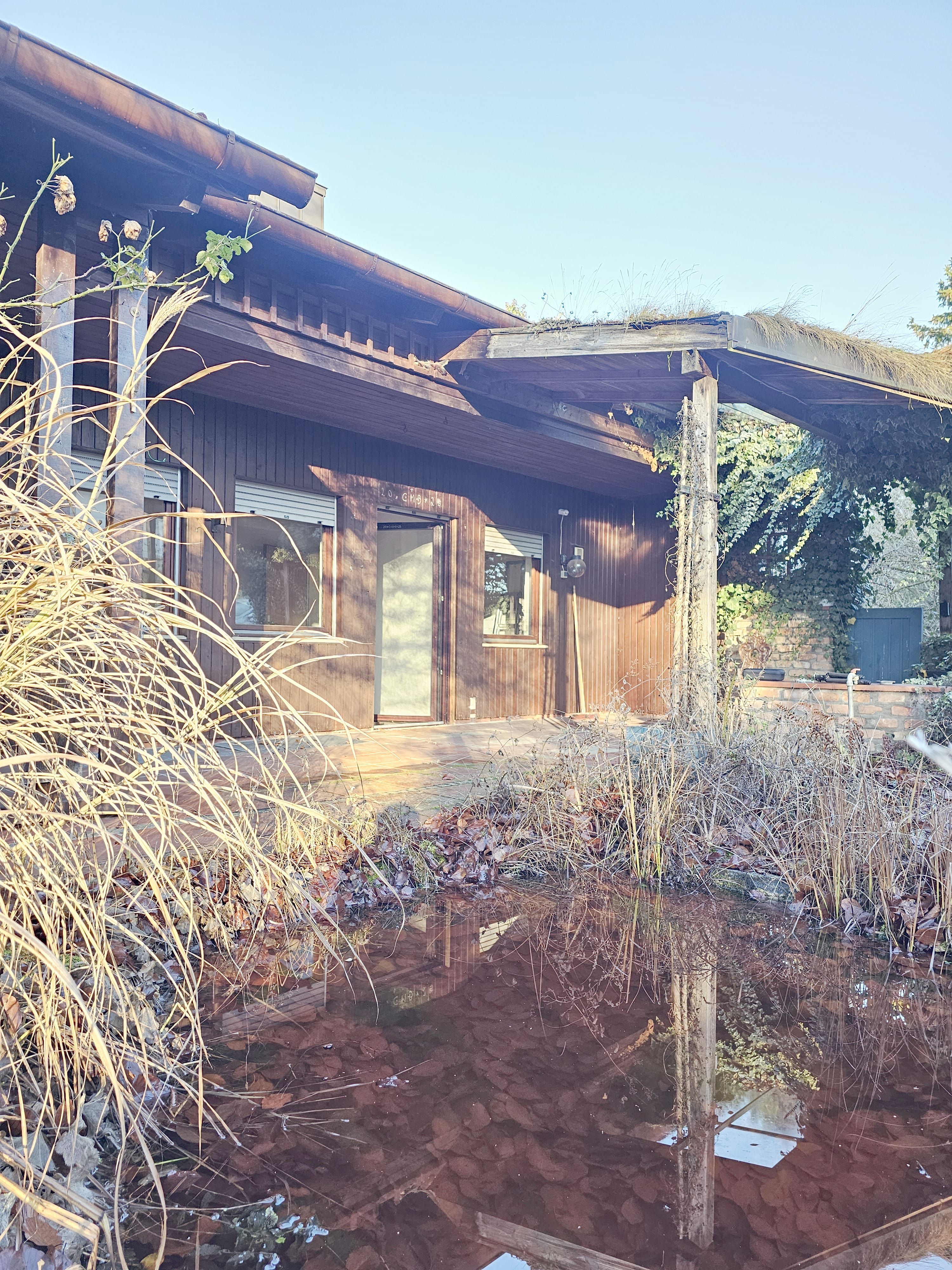 - Große Terrasse mit Blick ins Grün, Teich und Abendsonne